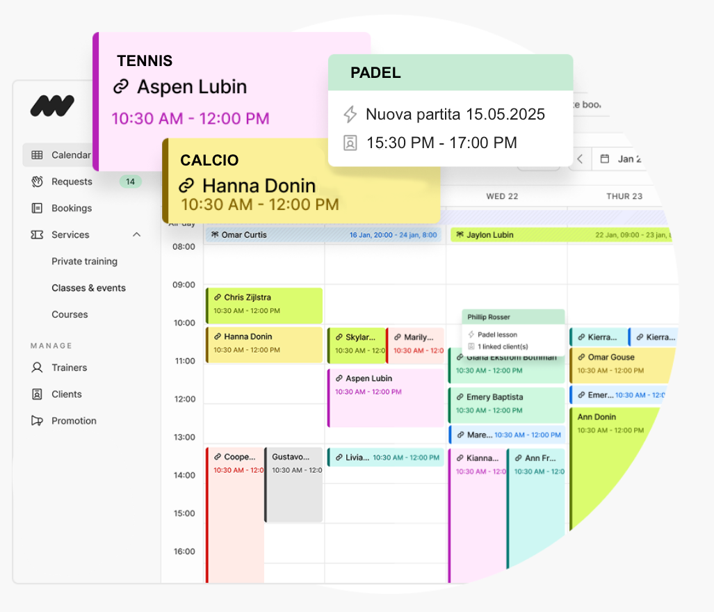 “Prima era un caos organizzare le partite di tennis e le ore di calcetto: doppie prenotazioni, messaggi a tutte le ore, confusione sui pagamenti. Con questo gestionale integrato sul nostro sito, i clienti prenotano e pagano in pochi clic. Abbiamo ridotto gli errori a zero e ricevuto tantissimi complimenti per la comodità.”