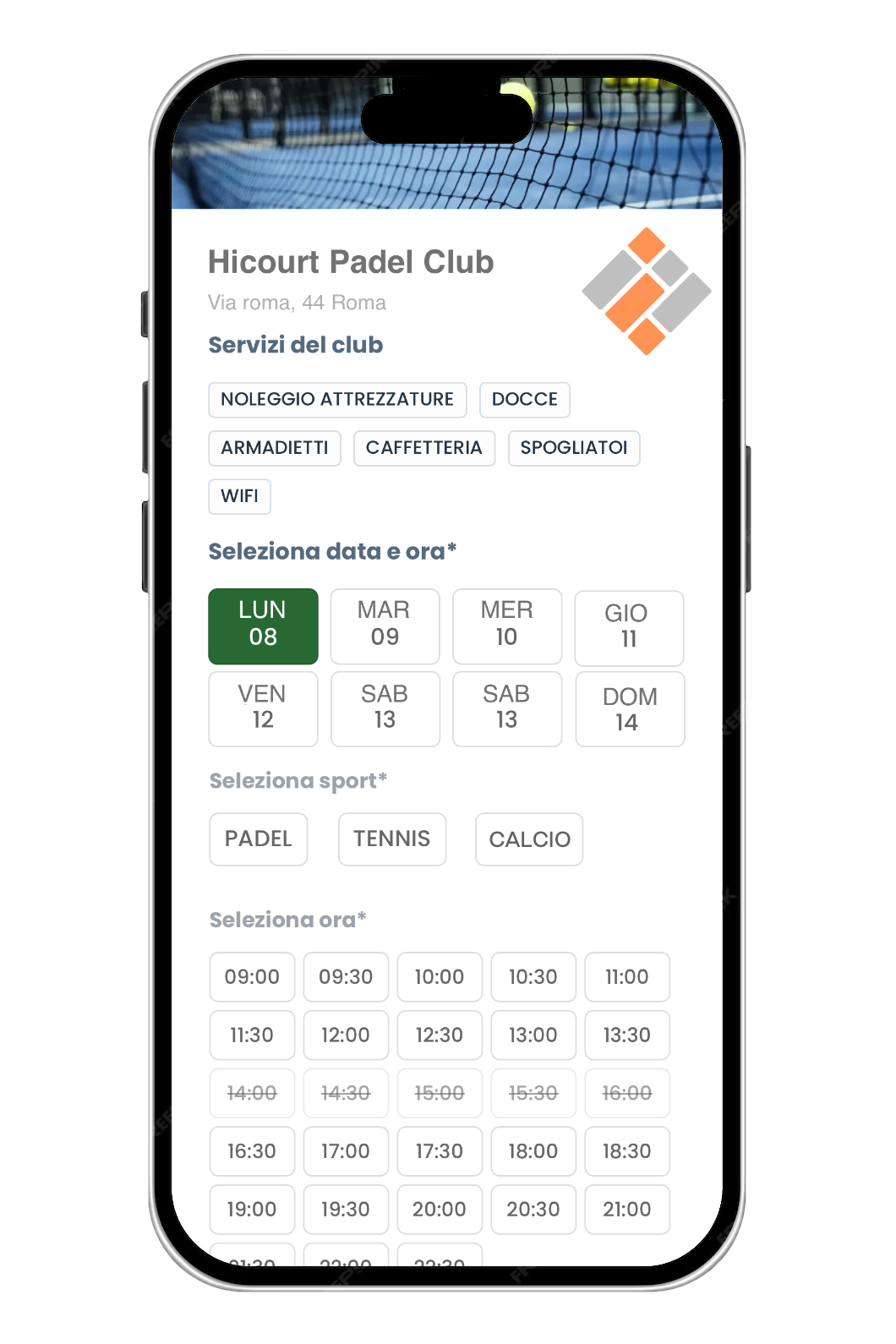 Gestire il tuo club non è mai stato così semplice: con Hicourt aumenti le prenotazioni e risparmi tempo, tutto in un’unica piattaforma.
